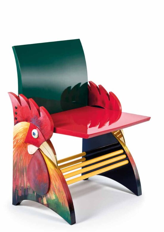 Stol Petelin je bil izdelan za prostore občine Šentjernej, ki ima v svojem grbu petelina. Sedež stola je mogoče dvigniti, pri čemer se petelinove oči nekoliko zavrtijo, saj so na osi vrtljivega sedeža. Stol ima unikatno poslikavo.