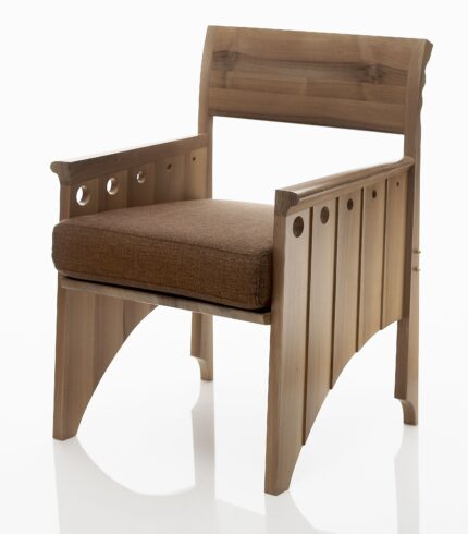 Stol iz serije s steklenimi naslanjali. Tokrat je bilo steklo pred izdelavo stola nedotaknjeno.